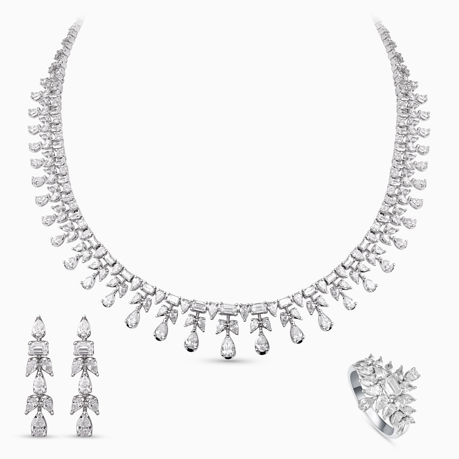 Wedding Diamond 21 cts. 3 pcs Set by Kooheji Diamonds – expertly designed with 18k White Gold showcasing 21.37 cts of brilliant diamonds. Features 296 diamonds with clarity SI and color G-H. Ideal choice for weddings, anniversaries, and memorable gifts.